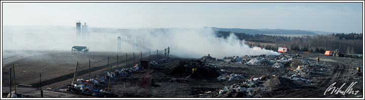 Nedělní požár skládky zaměstnal několik desítek hasičů. Jeho uhašení stálo mnoho času, peněz, potu i energie. Většina chlapů měla takříkajíc po neděli. I tak se dalo na této akci paradoxně najít, alespoň pro fotografa, něco "hezkého". Ranní světlo totiž dělalo ve spojení s toxickým kouřem hotové divy, a tak vás zvu prostřednictvím krátké fotoreportáže do míst za červenobílou pásku, kam se jen tak někdo nepodívá.